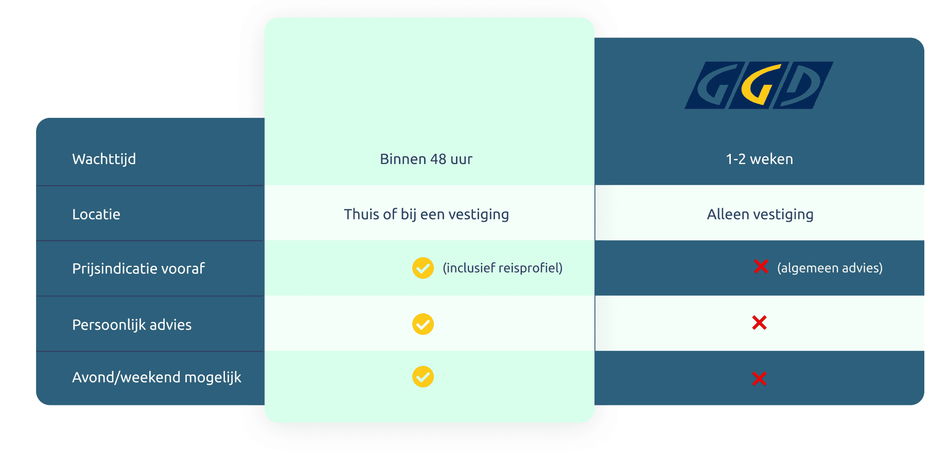 Beim Vaxio erhalten Sie den gleichen Schutz wie beim GGD, aber mit einem Service, der viel besser auf Ihre Bedürfnisse und Reisepläne abgestimmt ist. Keine langen Wartezeiten, kein Ärger mit festen Standorten und immer eine Beratung, die persönlich auf Ihre Gesundheit und Ihr Reiseziel zugeschnitten ist.